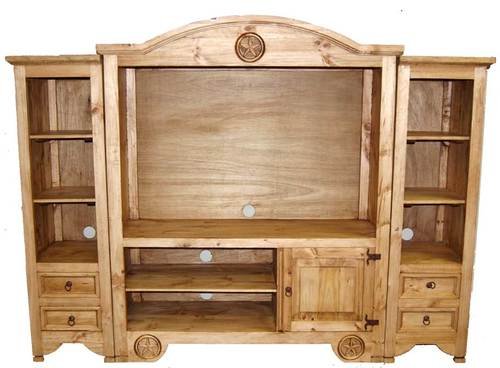 Three piece flat screen entertainment center. Inside dimensions 37" high and 57" wide. Available with or without star. 27" from floor to bottom of TV base opening